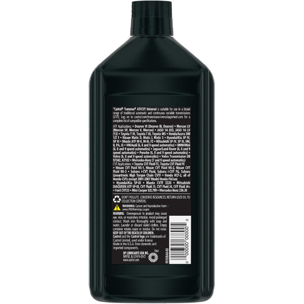 Castrol® Transmax® ATF/CVT Universal is a technologically advanced full-synthetic formulation designed to deliver excellent performance in most of the traditional stepped automatic transmissions and Continuously Variable Transmissions currently in use. It is also suitable for use in hybrids.